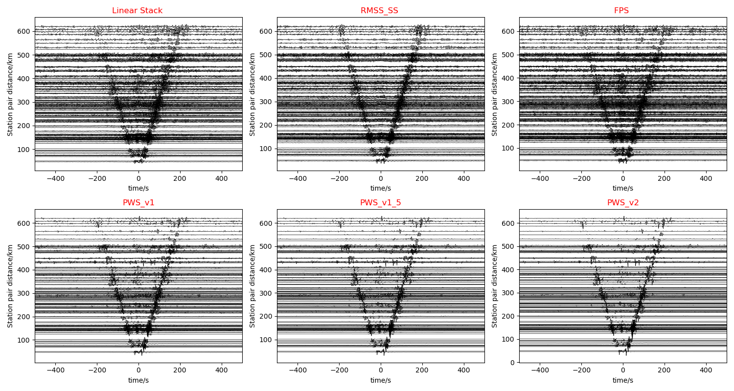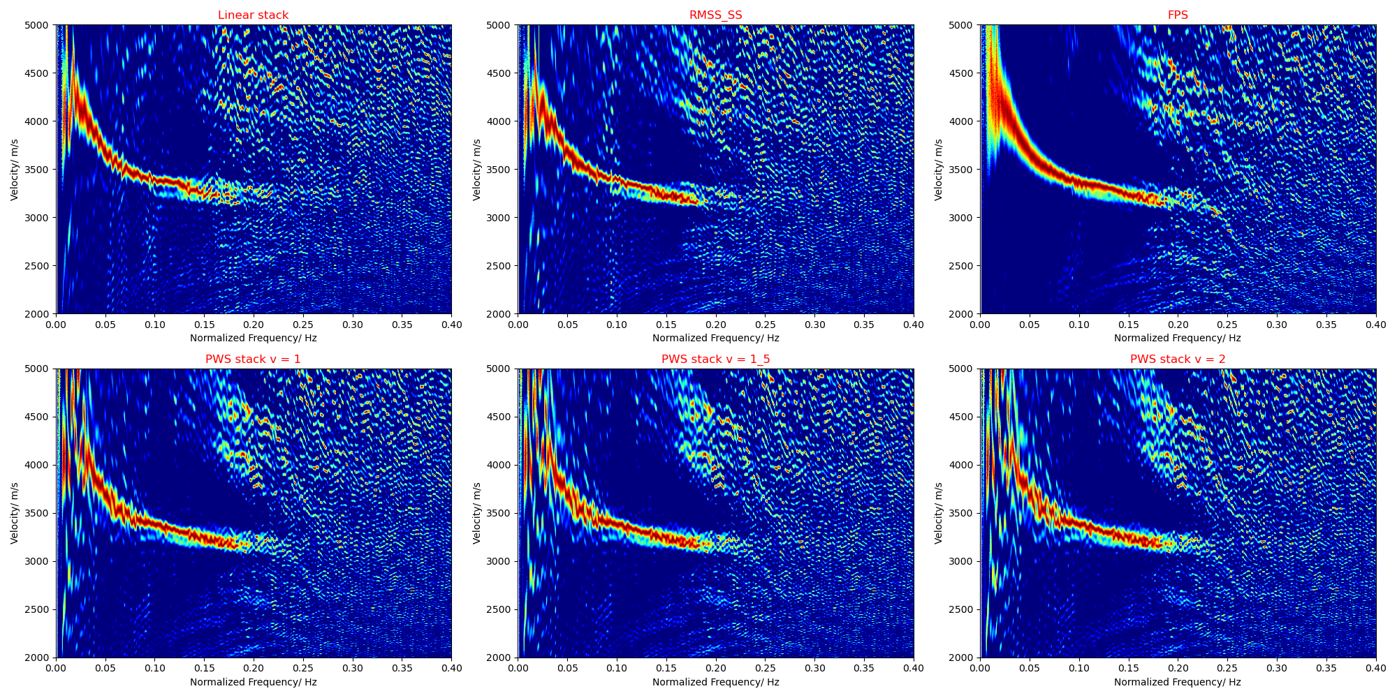 - PWS significantly improves the SNR of CCFs, while dramatically damages the dispersion spectrogram quality. (Note that the curves in the dispersion spectrograms of PWS are not overtones but artifacts)